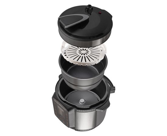 14 автоматических программы, Сенсорная панель управления, 4 в 1: мультиварка, скороварка, пароварка, медленноварка, Автоподогрев до 24 часов, LED-дисплей, Функция отложенного старта до 24 часов, Уровень давления: низкий – 35-50кПа, высокий – 50-70 кПа, Программа «Мастер-повар» (30°-180°С), Защита от перегрева, Корпус из нержавеющей стали
