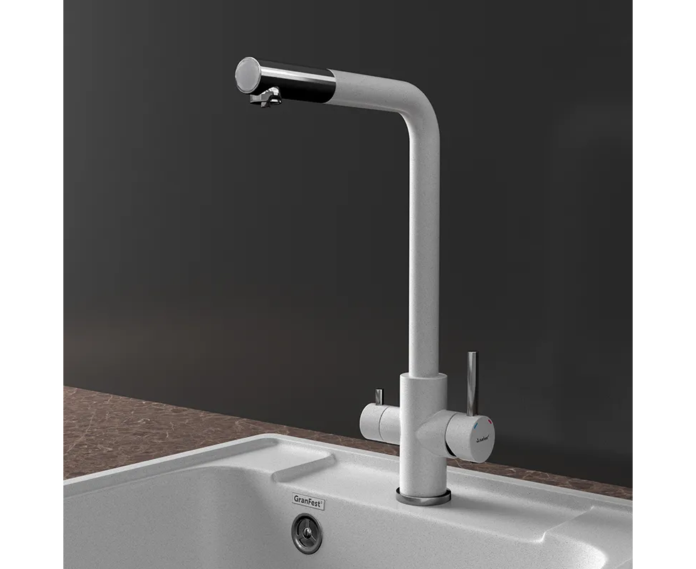 Смеситель для кухни GRANFEST GF-Z-5421 deep gray Quarz Г-образный, кран под фильтрованную воду, темно-серый