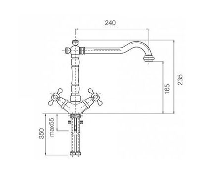 Излив длина 240 мм, высота 165 мм