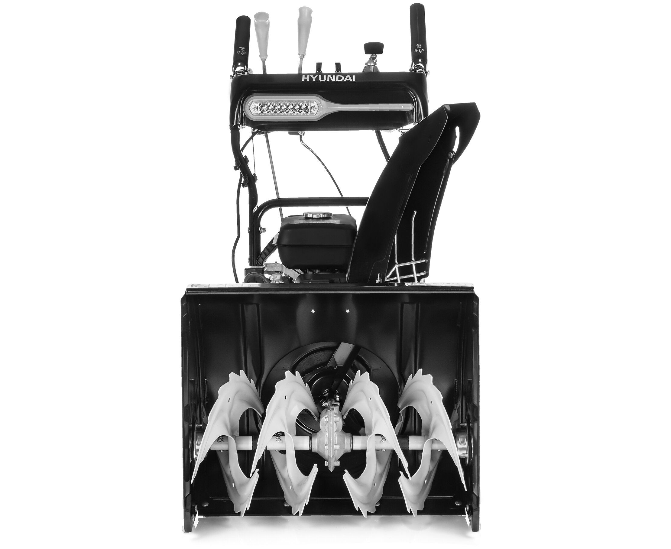 На панели управления держателя бензинового снегоочистителя размещена светодиодная фара. Зимой световой день короткий, а потому подсветка позволит привести в порядок участок как ранним утром, так и поздним вечером.