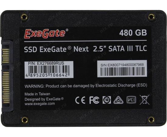 SSD 2.5" 480GB SATA3 ExeGate Next (EX276689RUS) (TLC, R/W: up to 560/530MB/s, MTBF: 1.8 млн. ч)