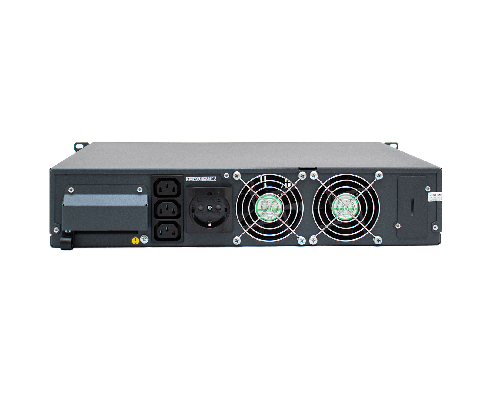 Нагрузка (выходные разъёмы) IEC-320-C13 (3 шт.), EURO F-type (1 шт.), клеммы (L, N, винт М4)