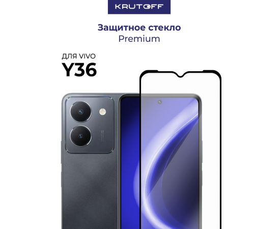 Стекло защитное Full Glue Premium Krutoff для Vivo Y36 черное