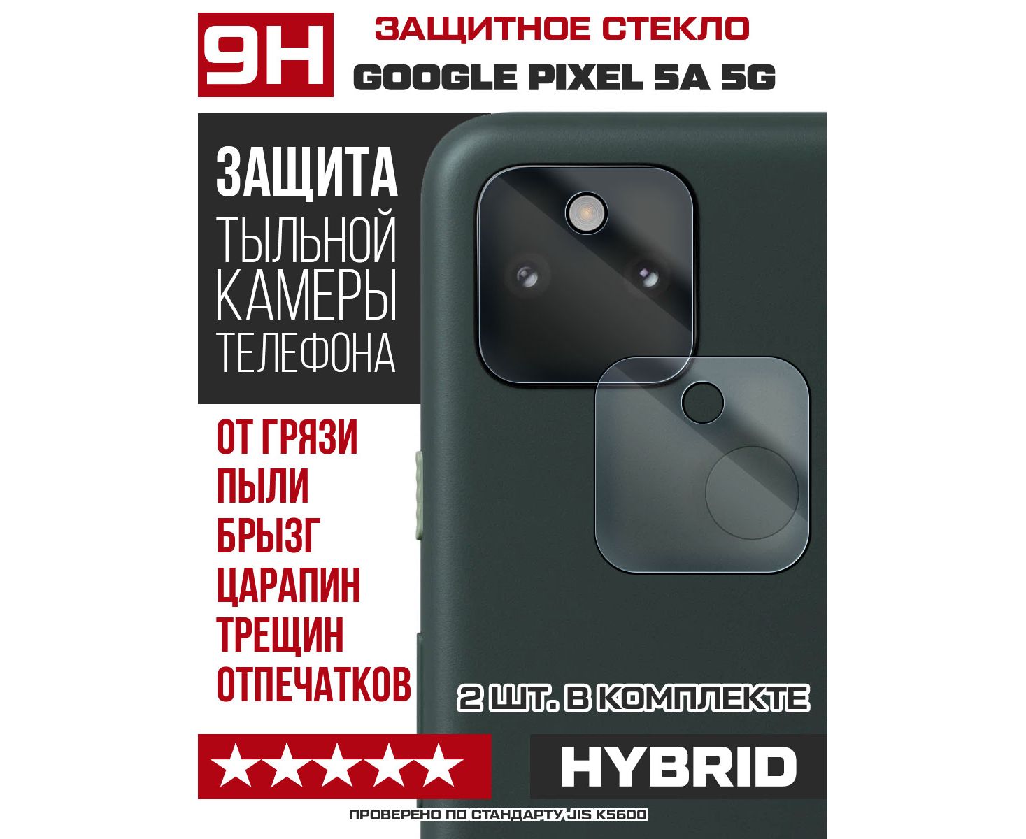 Стекло защитное гибридное для камеры Google Pixel 5а 5G (2 шт.)