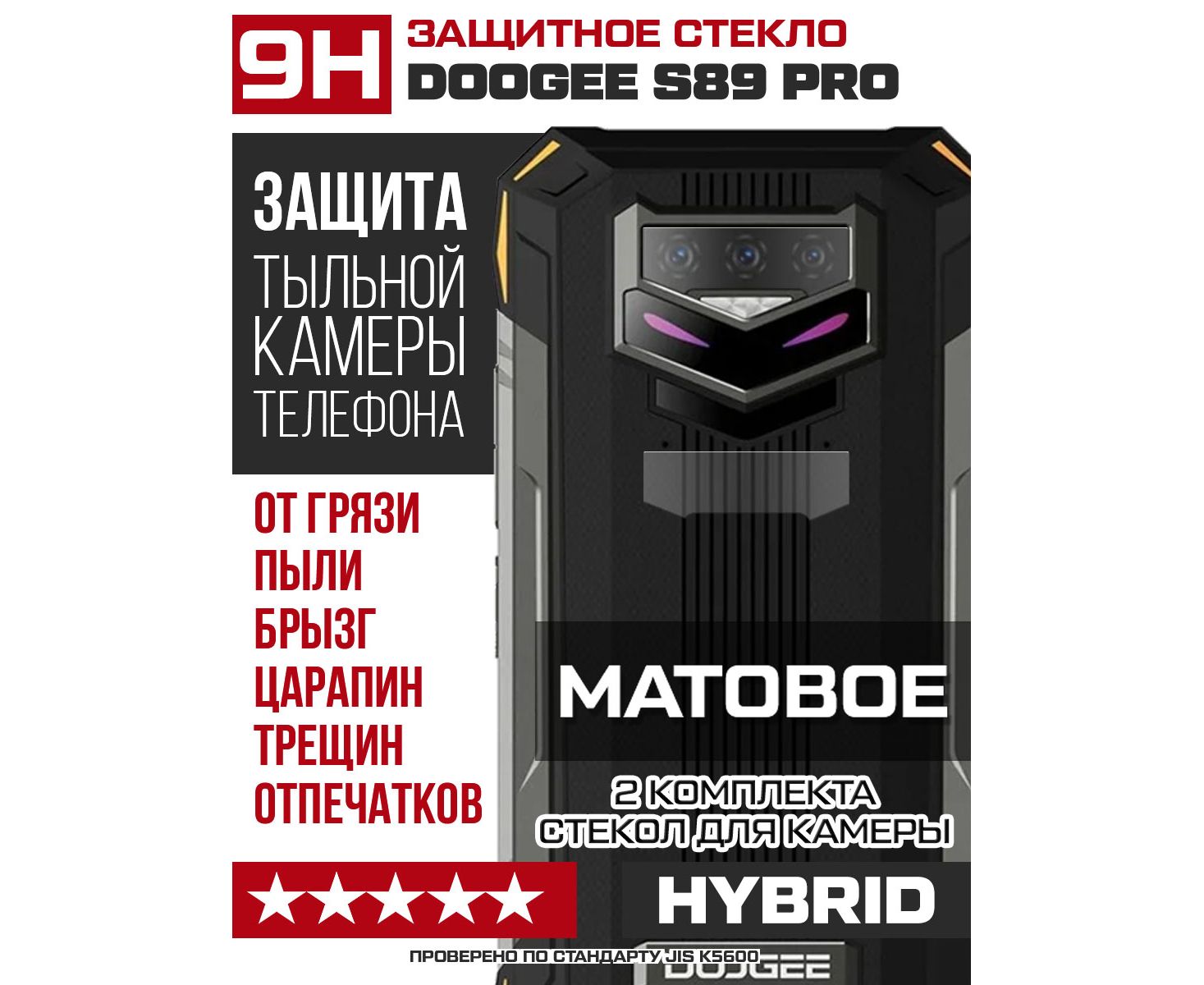 Стекло защитное гибридное МАТОВОЕ Krutoff для камеры Doogee S89 Pro (2 шт.)