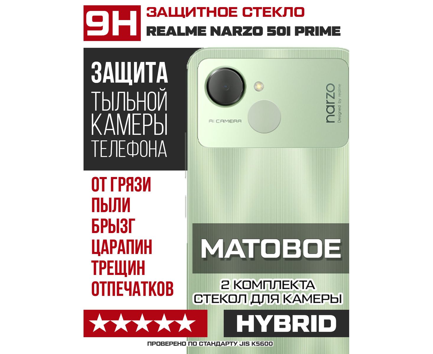 Стекло защитное гибридное МАТОВОЕ Krutoff для камеры Realme Narzo 50i Prime (2 шт.)