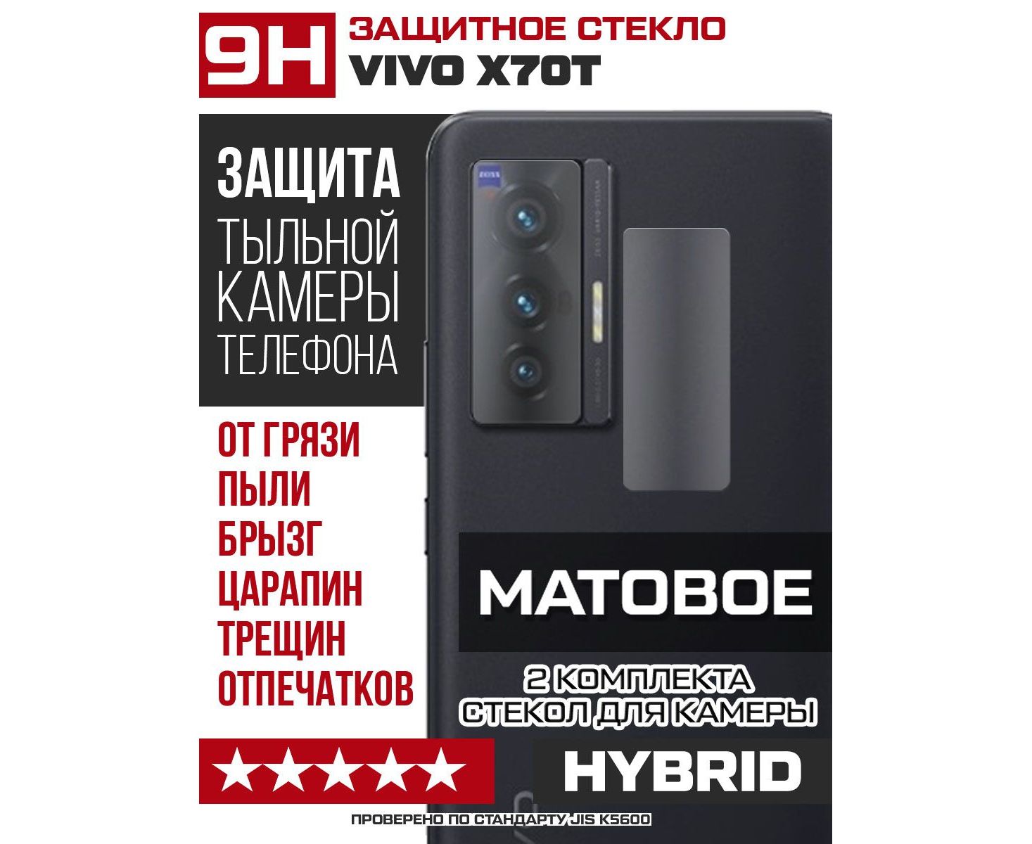 Стекло защитное гибридное МАТОВОЕ Krutoff для камеры Vivo X70T (2 шт.)