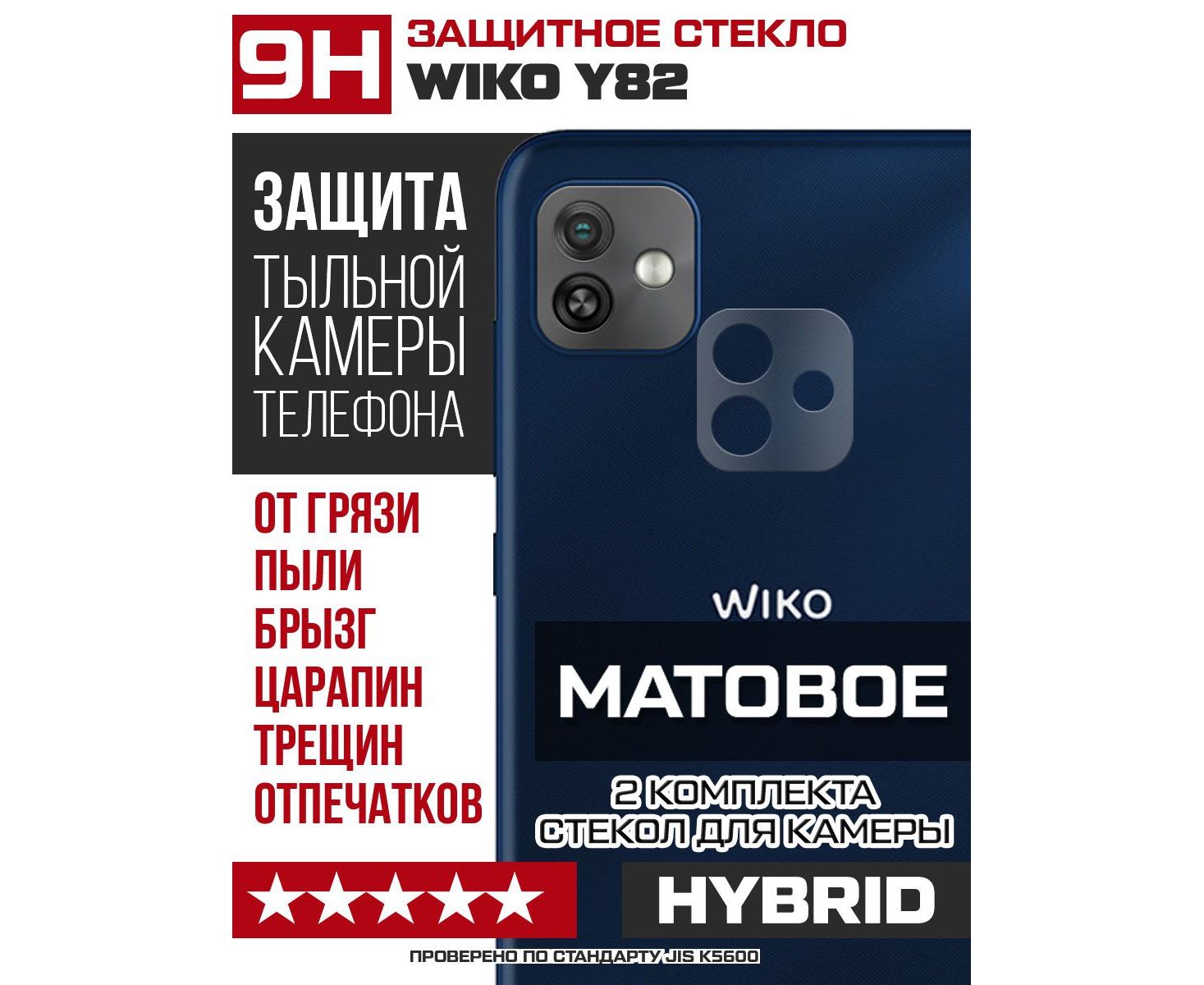Стекло защитное гибридное МАТОВОЕ Krutoff для камеры Wiko Y82 (2 шт.)