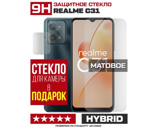 Стекло защитное гибридное МАТОВОЕ Krutoff для Realme C31 + защита камеры (2 шт.)