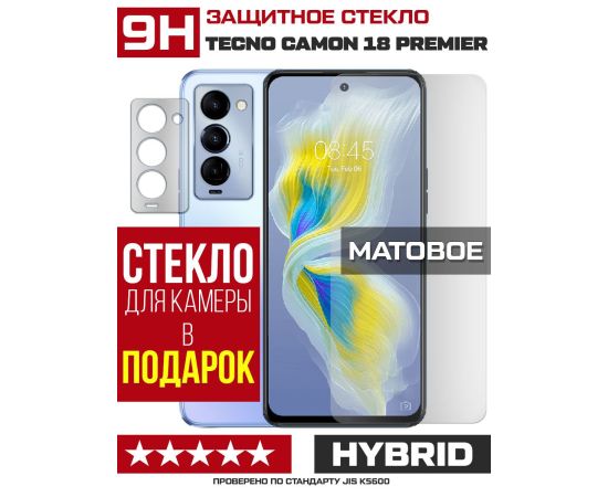 Стекло защитное гибридное МАТОВОЕ Krutoff для Tecno Camon 18 Premier + защита камеры (2 шт.)