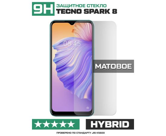 Стекло защитное гибридное МАТОВОЕ Krutoff для Tecno Spark 8