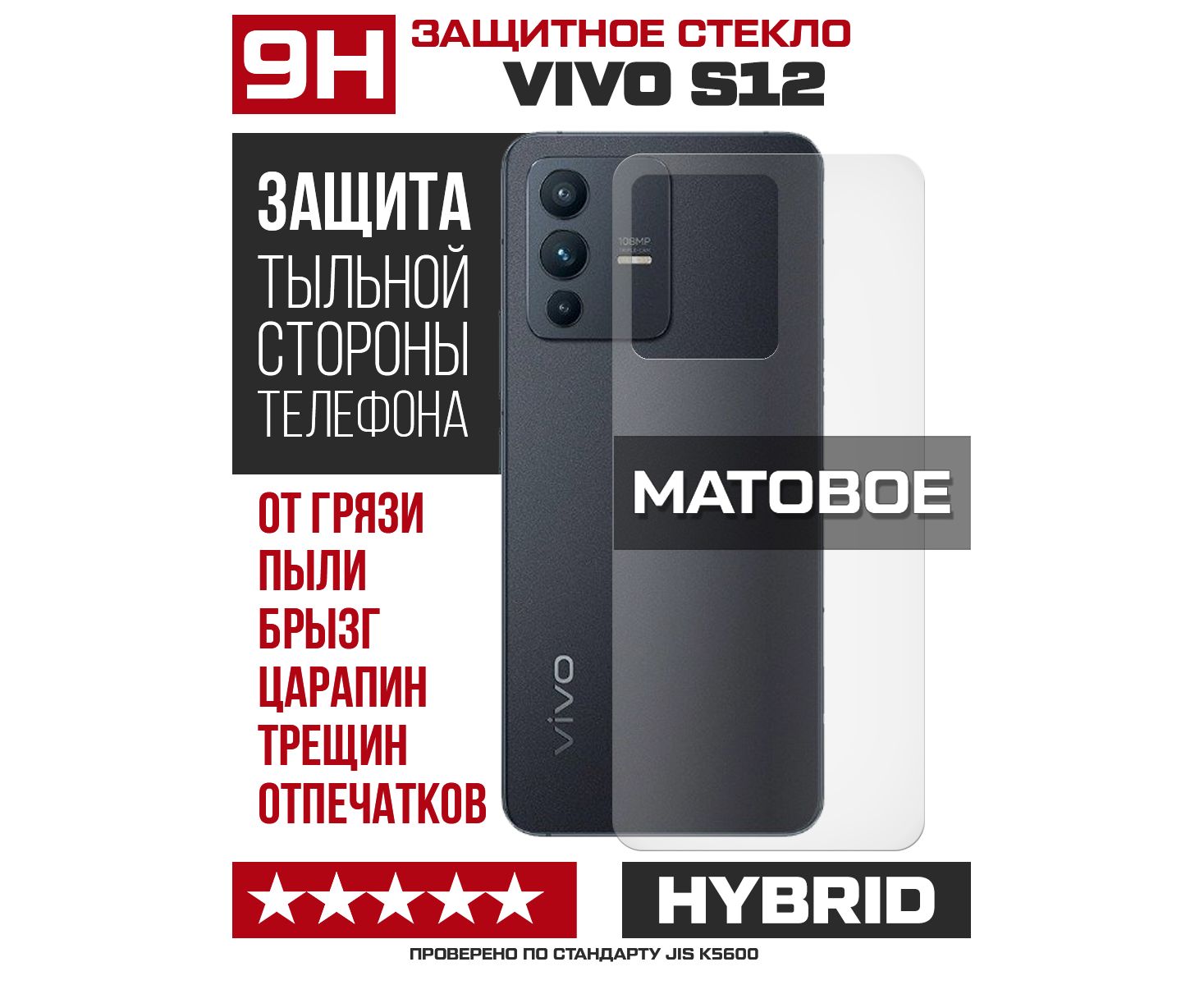 Стекло защитное гибридное МАТОВОЕ Krutoff для Vivo S12 задняя сторона