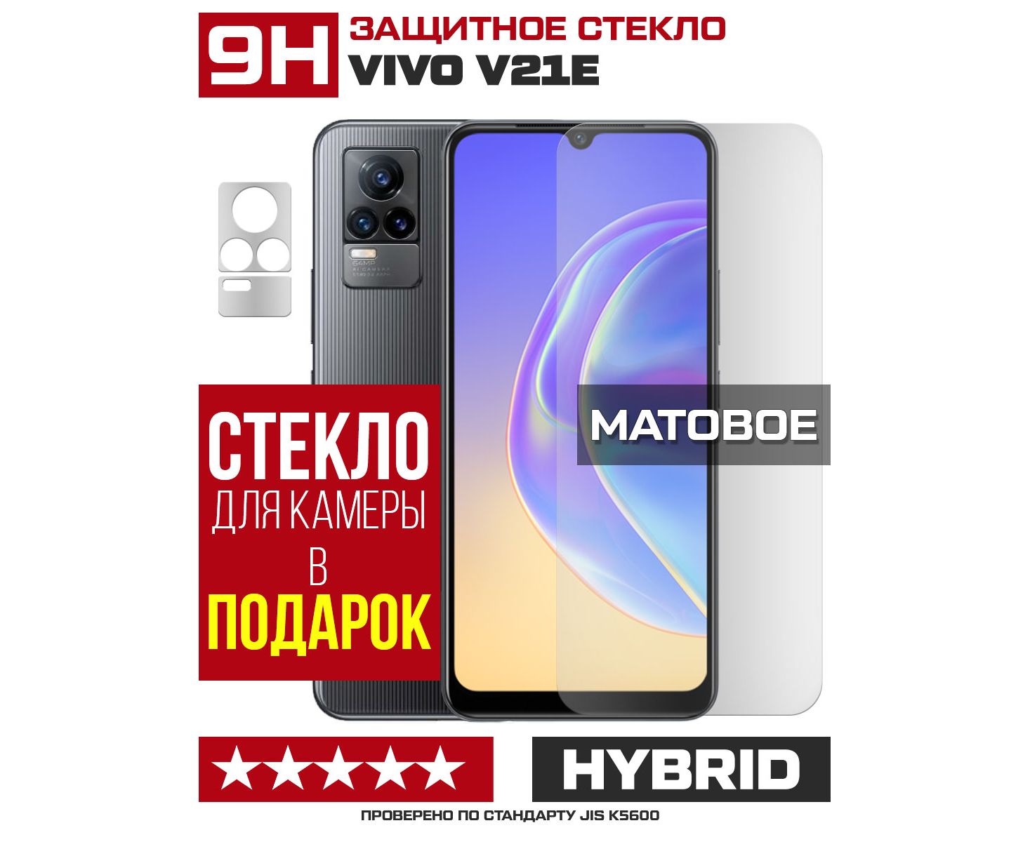 Стекло защитное гибридное МАТОВОЕ Krutoff для Vivo V21e + защита камеры (2 шт.)
