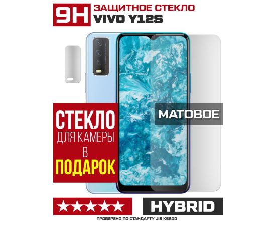 Стекло защитное гибридное МАТОВОЕ Krutoff для Vivo Y12s + защита камеры (2 шт.)