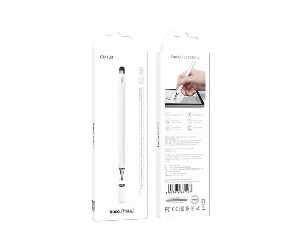 GM103 - это универсальный стилус от бренда Hoco. Простая, но в то же время надежная конструкция, является одной из самых популярных. Стилус имеет два активных наконечника и один запасной в комплекте. Данный девайс имеет широкое применение при работе с вашими любимыми гаджетами. Им можно как рисовать, так и работать с документами. Стильный современный дизайн отлично впишется в любую окружающую обстановку.