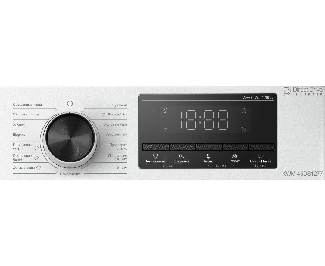 Электронное управление с LED-дисплеем помогает легко и быстро выбрать подходящую программу стирки. Мотор инверторный с прямым приводом. Предусмотрено 15 режимов, которые помогают эффективно ухаживать за различными типами тканей, включая хлопок, смешанные ткани, шерсть и даже пуховики. Отдельно стоит отметить наличие функции стирки с паром, которая позволяет бережно обновить одежду, удаляя запахи и разглаживая мелкие складки. Кроме того, есть возможность отложенного старта до 24 часов.