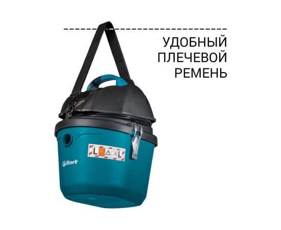 Для обеспечения максимального комфорта во время работы, пылесос BORT BSS-1212 оснащен плечевым ремнем, который позволяет переносить пылесос на плече или на спине, что особенно удобно при уборке автомобильного салона или рабочей зоны.