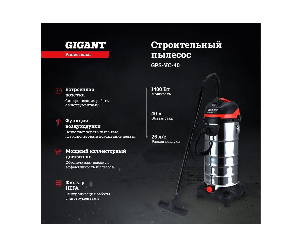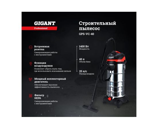 Строительный пылесос Gigant Professional объем бака 40 л, GPS-VC-40