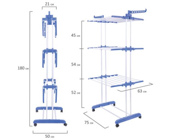 Напольная раскладная сушилка для белья LAIMA HOME многофункциональная, 3 уровня, на колесах 607807 предназначена для сушки одежды.