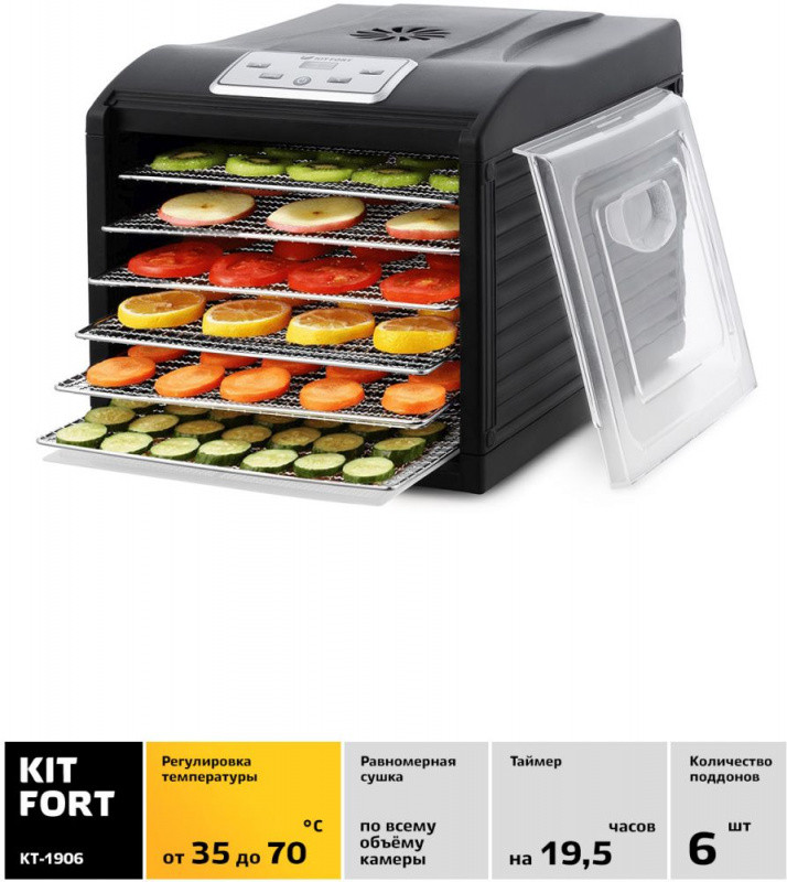 Сушка для фруктов и овощей Kitfort КТ-1906 18под. 500Вт черный
