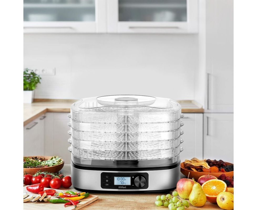 Сушилка для овощей и фруктов КТ-1943 имеет компактные размеры, а благодаря стильному дизайну впишется в любой кухонный интерьер! Храните любимые фрукты и овощи полезными круглый год.