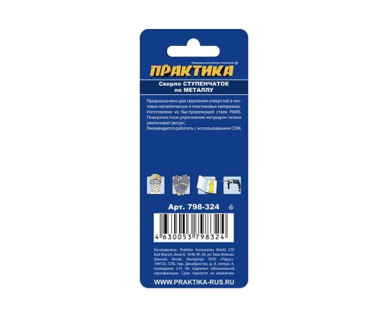 Технические характеристики ступенчатого сверла по металлу ПРАКТИКА 798-324