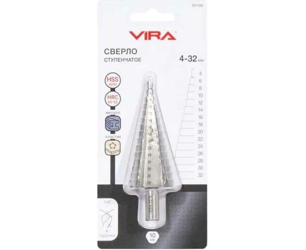 Сверло ступенчатое VIRA 551432 4-32 мм (шаг 2мм)