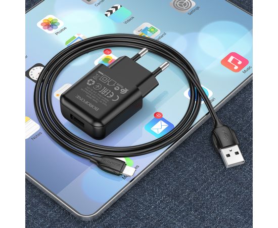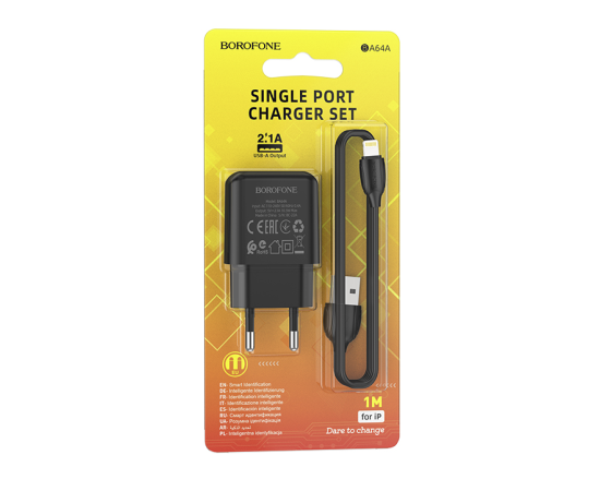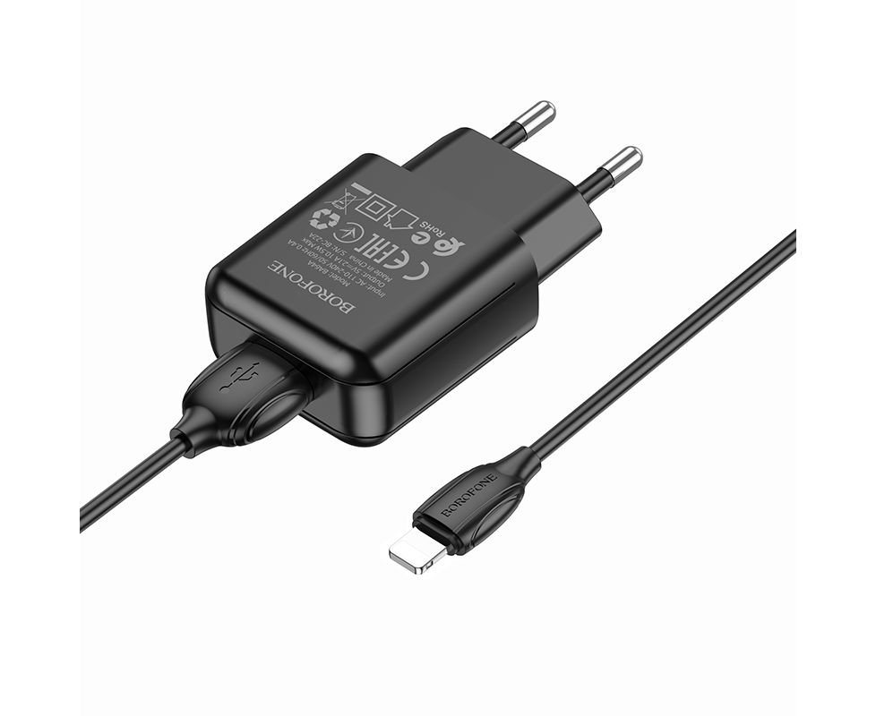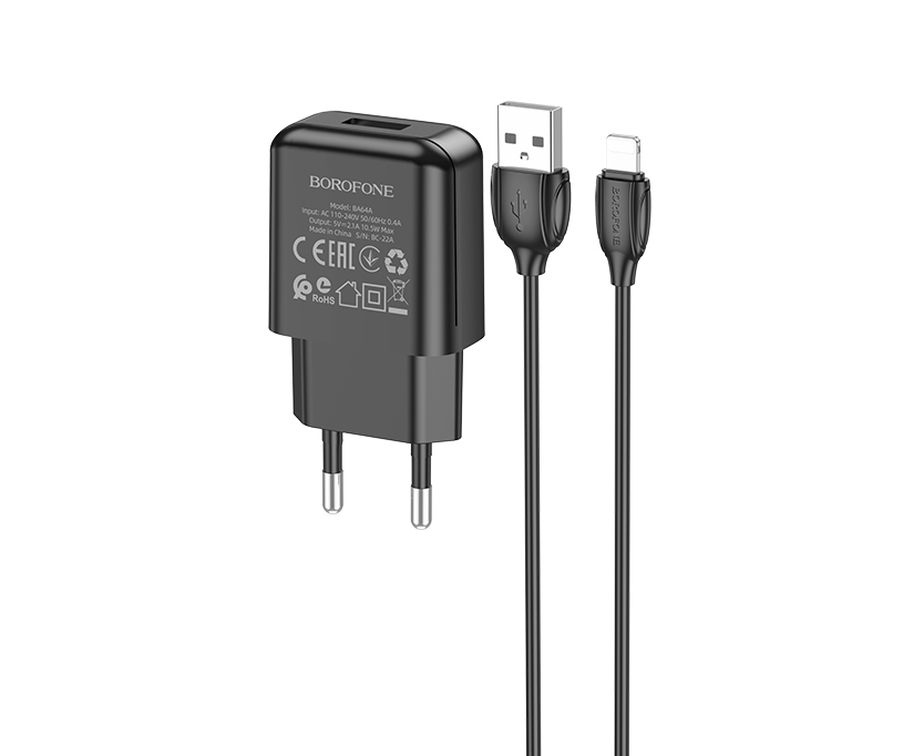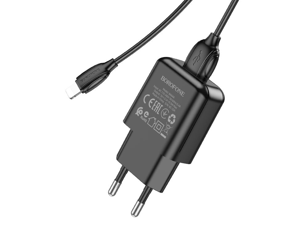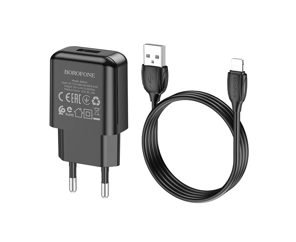 СЗУ 1USB 2.1A для Lightning 8-pin Borofone BA64A 1м (Black)