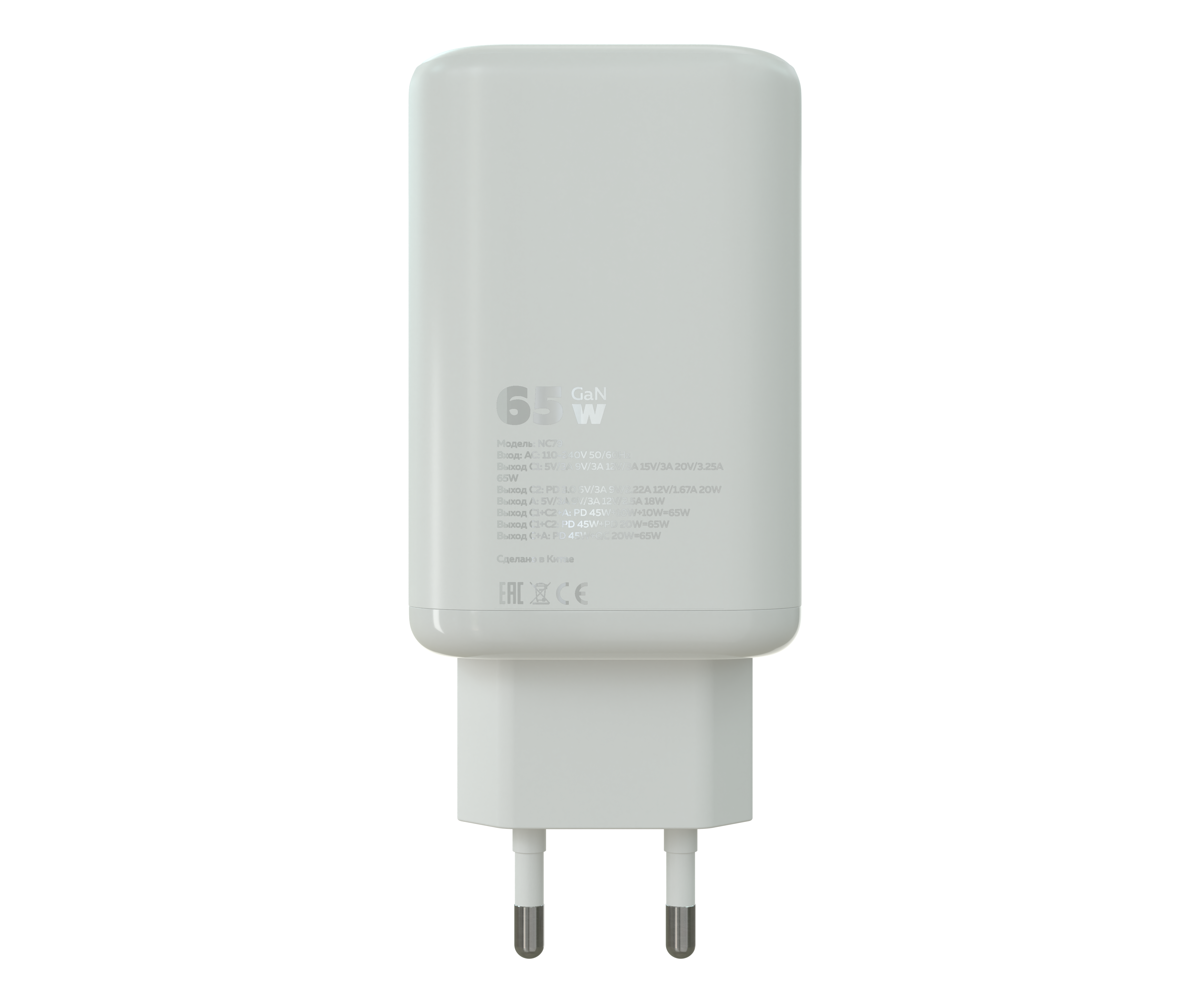 Разъем подключения: USB, Type-C (PD). Количество разъемов: 3. Вход: АС110-240V 50/60Hz Выход С1: 5V/3A 9V/3A 12V/3A 15V/3A 20V/3.25A 65W Выход С2: PD3.0 5V/3A 9V/2.22A 12V/1.67A 20W Выход А 5V/3A 9V/3A 12V/2.5A 18W Выход C1+C2+A: PD45W +10W + 10W = 65W Выход C1+C2: PD45W+PD20W=65W Выход С+А: PD45W+QC20W=65W Led-индикатор: есть. Материал ЗУ: прочный ABС пластик. Размер: 107*46*25 мм. Вес: 100 г. Кабель: Type-C-Type-C 3.0A PD100W. Спецификация медной проволоки: 70 гр. 0,1*2 + 10 проволок 0.1*4. Наружное покрытие: TPE. Материал коннектора: 6-ядерная головка с чипами EMK TYPEC. Длинна: 2 м. Вес: 20 г. Комплектация:сетевое зарядное устройство, Led-лампа, кабель, буклет Цвет:Black,White