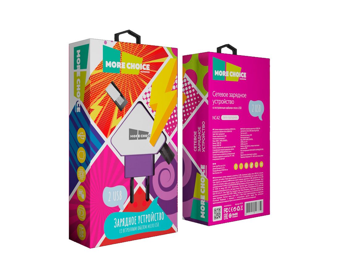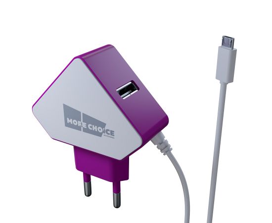 СЗУ 2USB 1.5A для micro USB со встроенным кабелем More choice NC42m (White Purple)