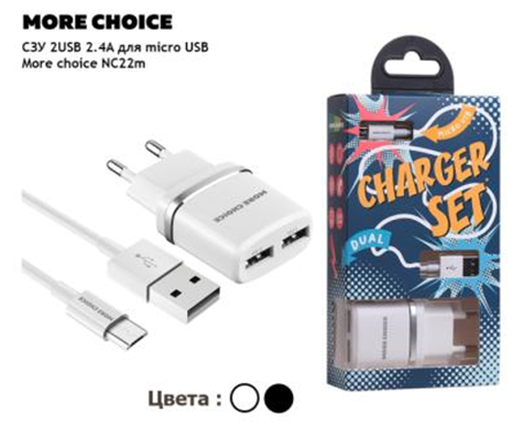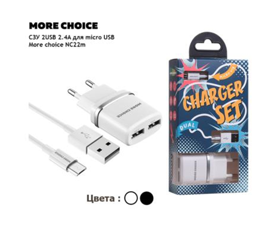 СЗУ 2USB 2.4A для Lightning 8-pin More choice NC22i (White)