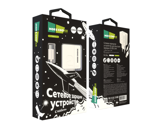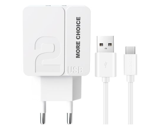 СЗУ 2USB 2.4A для Type-C More choice NC46a 1м (White White)
