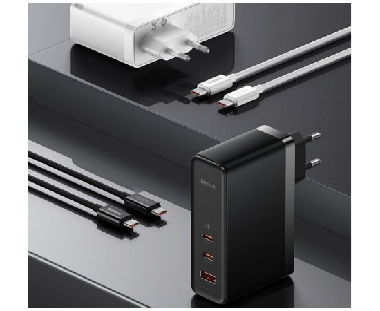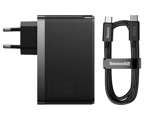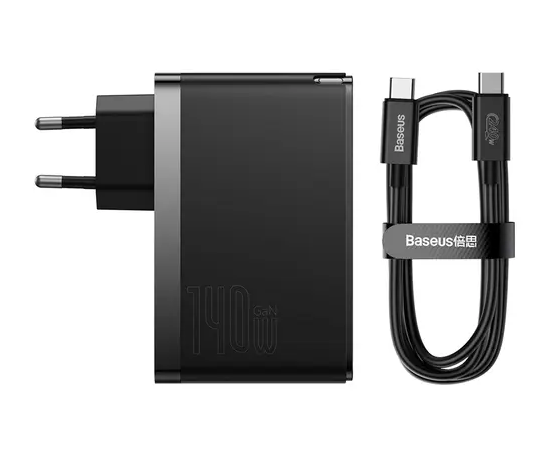 СЗУ Baseus GaN5 Pro Fast Charger 2C+U 140W EU Black+Cable Type-C to Type-C 240W(48V/5A) 1m (Black)