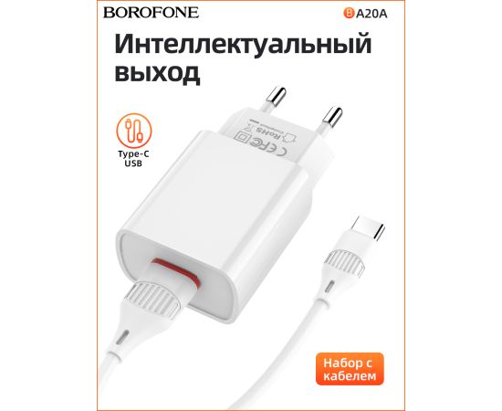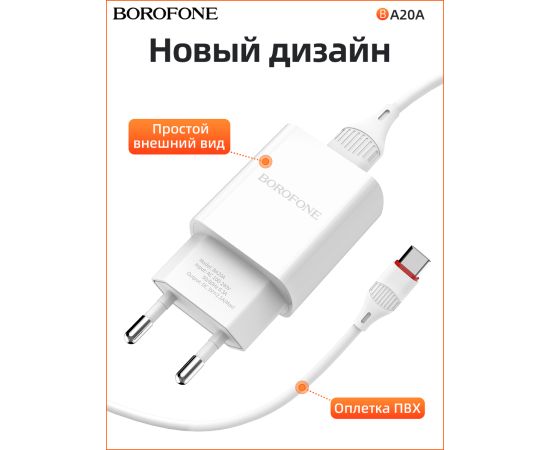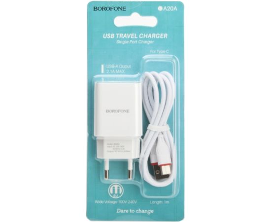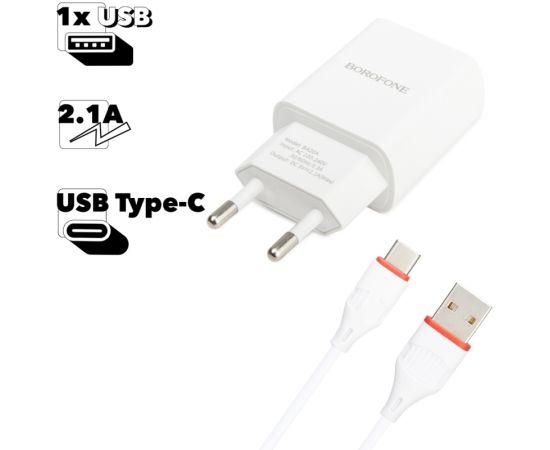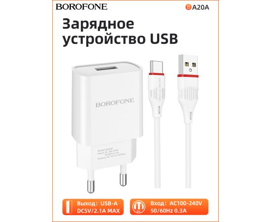 СЗУ BOROFONE BA20A Sharp 1USB, 5V, 2,1A + Type-C (белый)