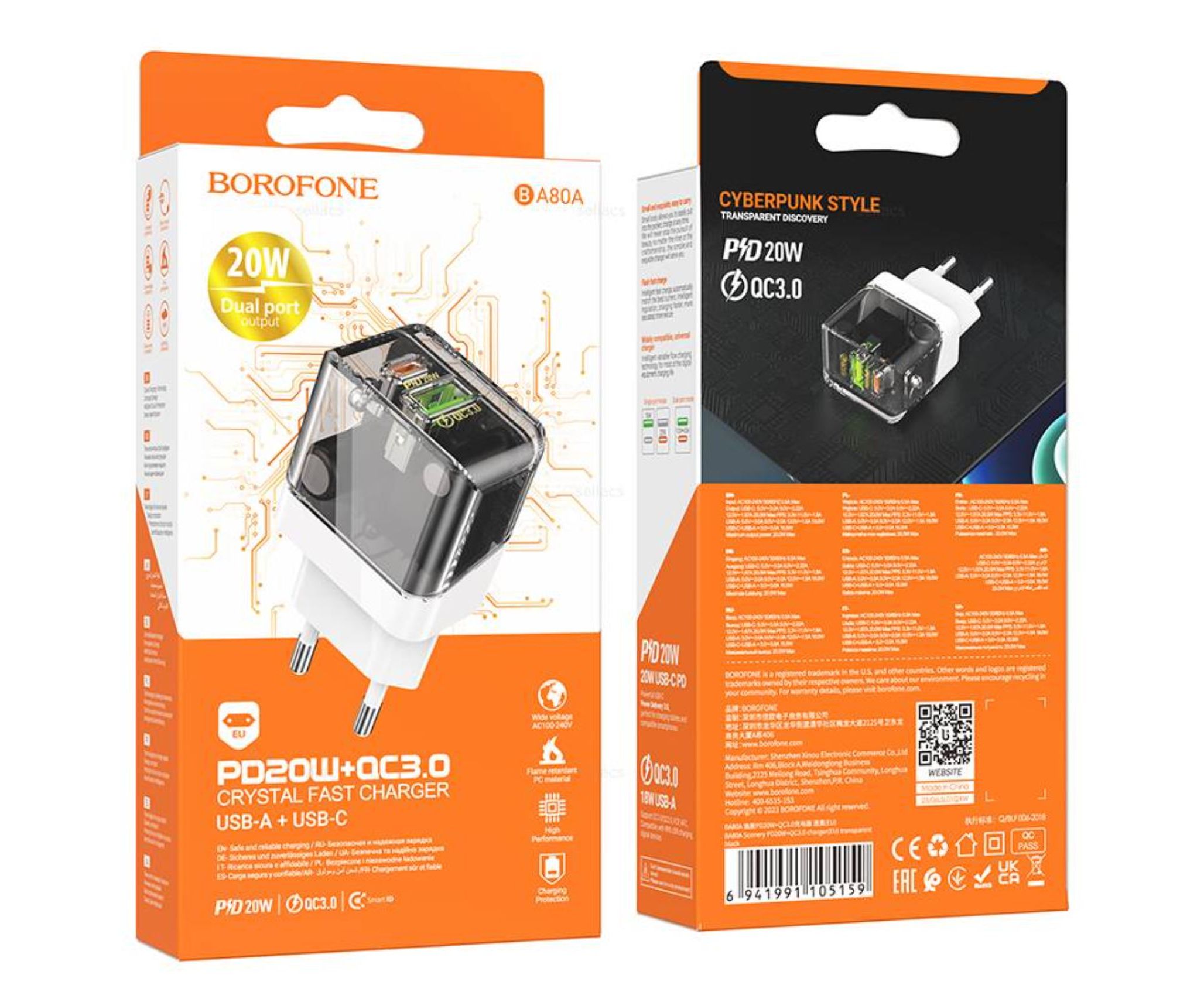 СЗУ BOROFONE BA80A Scenery PD20W+QC3.0 charger (EU) (прозрачно черный)