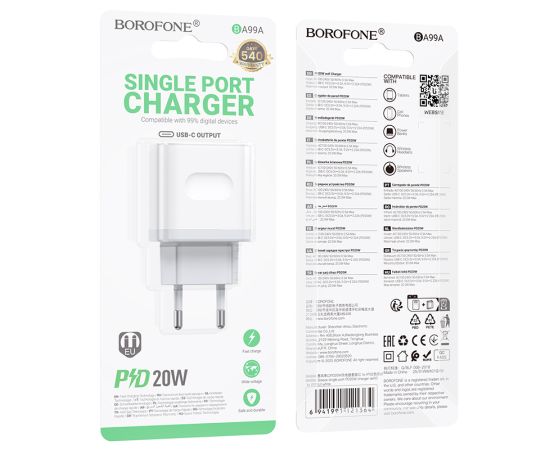 СЗУ BOROFONE BA99A Breeze single port PD20W (EU) (белый)