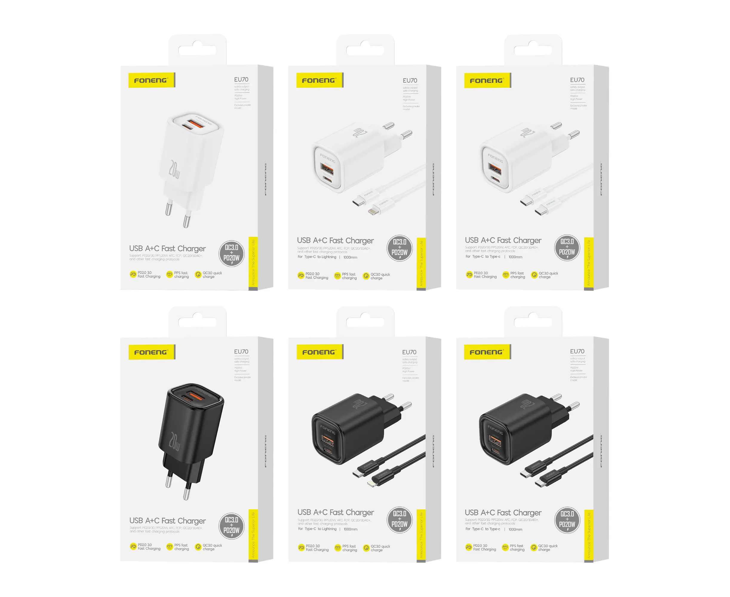 СЗУ Foneng EU70 USB-A / USB-C, PD20W + кабель Type-C to Lightning (White)