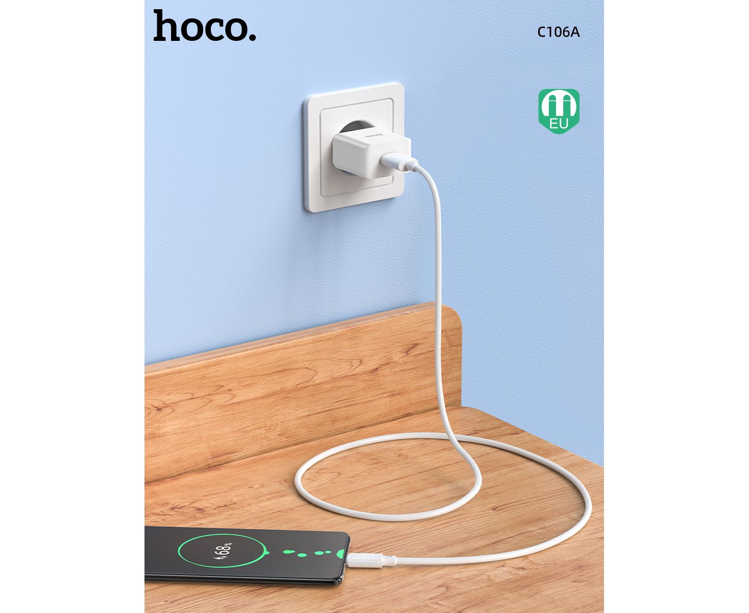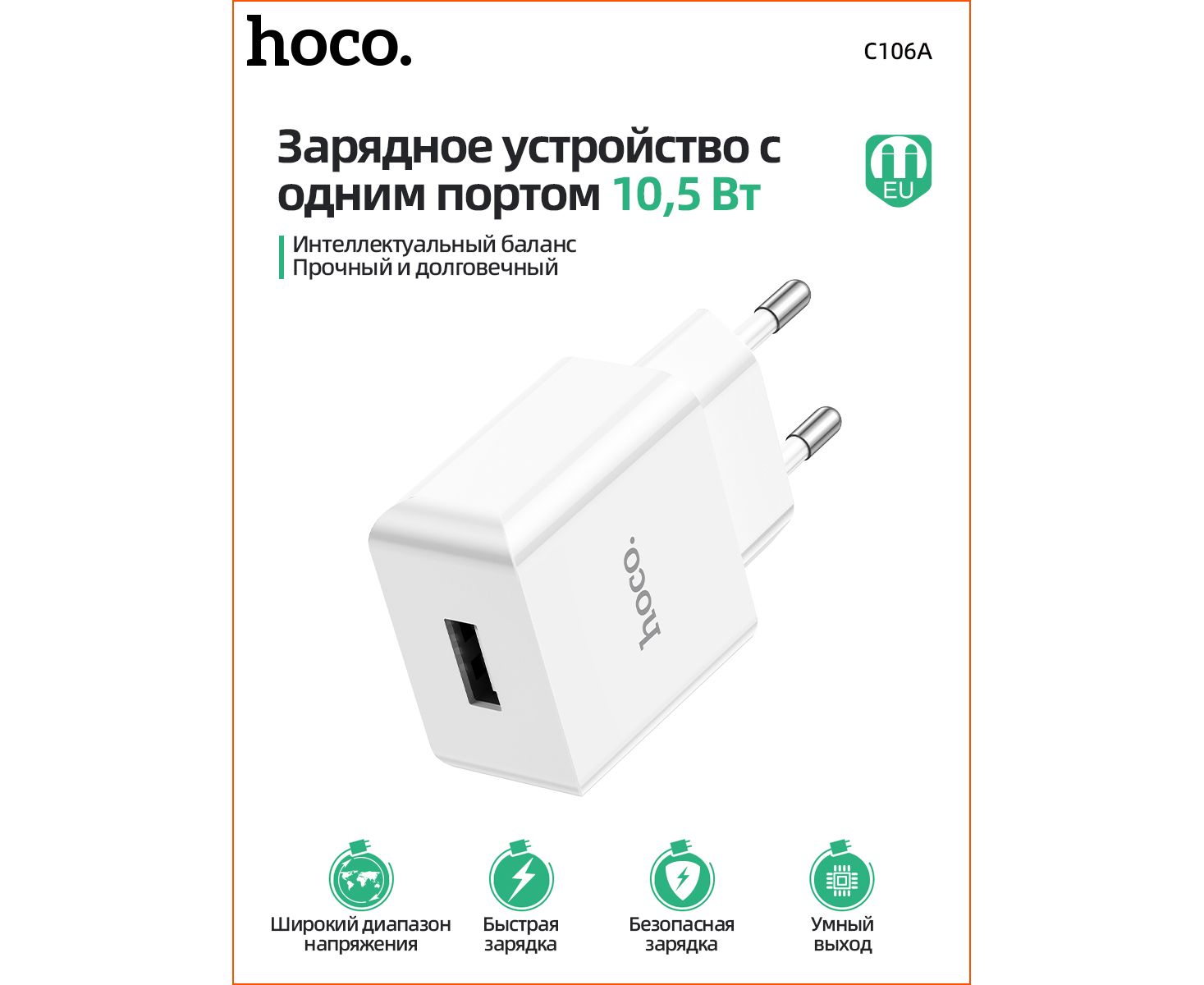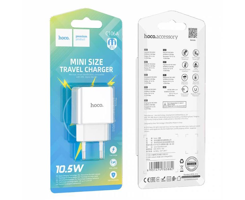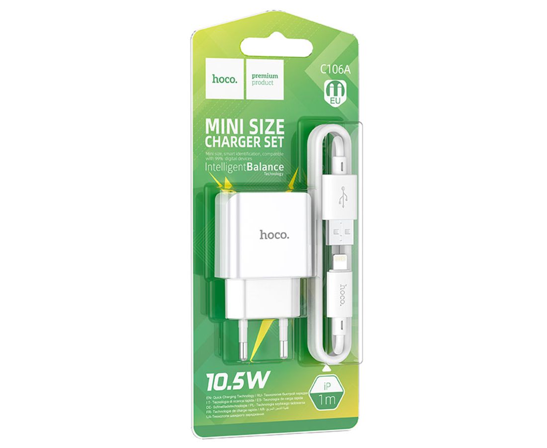 СЗУ HOCO C106A Leisure, 1USB + iP (EU) (белый)