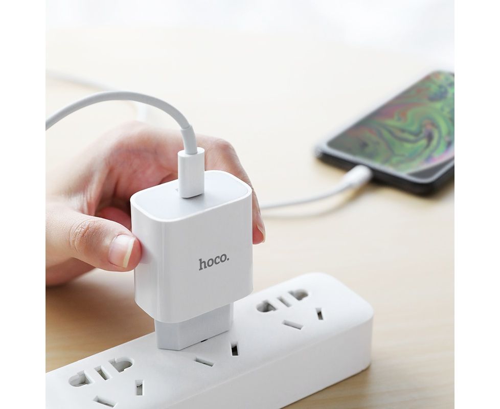 СЗУ HOCO C76A Plus Speed source PD20W charger set Type-C + lightning (белый)