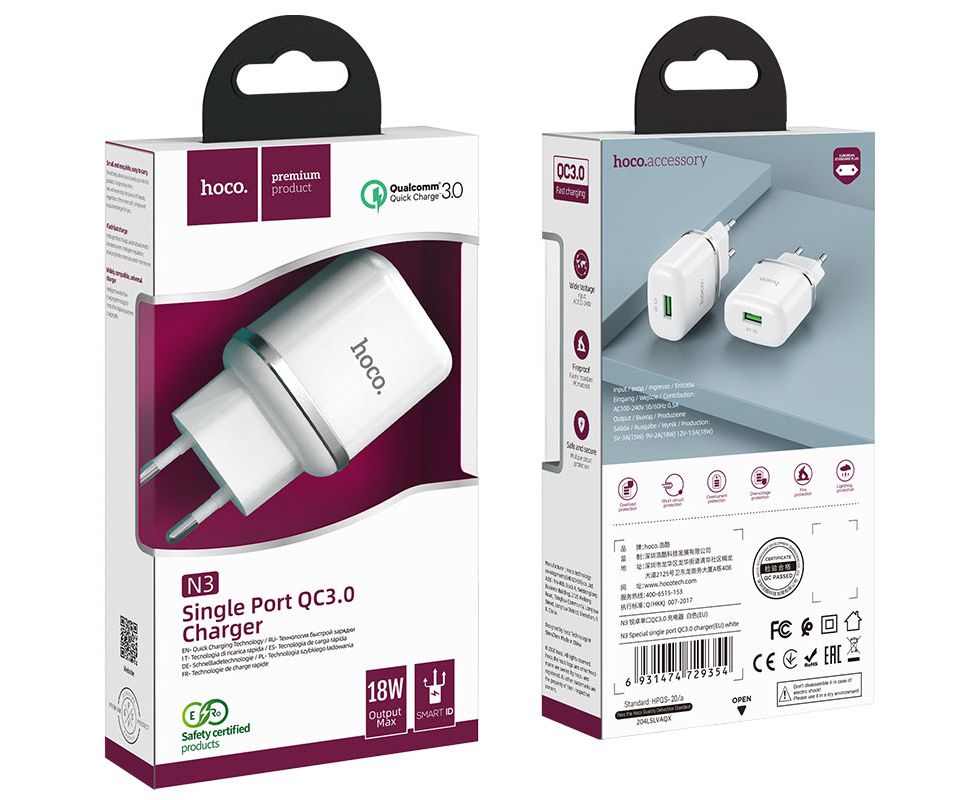 СЗУ HOCO N3 Special, 1USB, QC3.0 (EU) (белый)