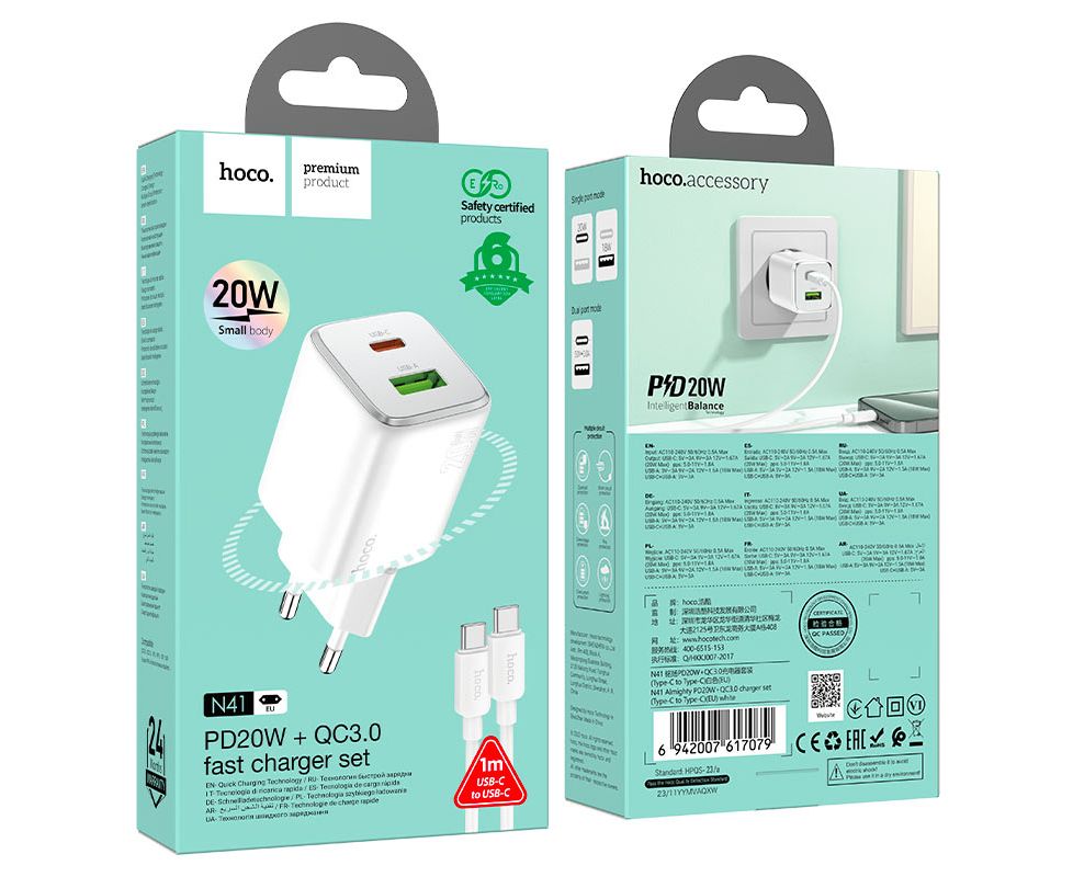 СЗУ HOCO N41 Almighty PD20W+QC3.0 charger set Type-C to Type-C (белый)