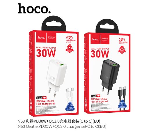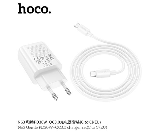 СЗУ HOCO N63 Gentle PD30W+QC3.0 cabel Type-C to Type-C (белый)