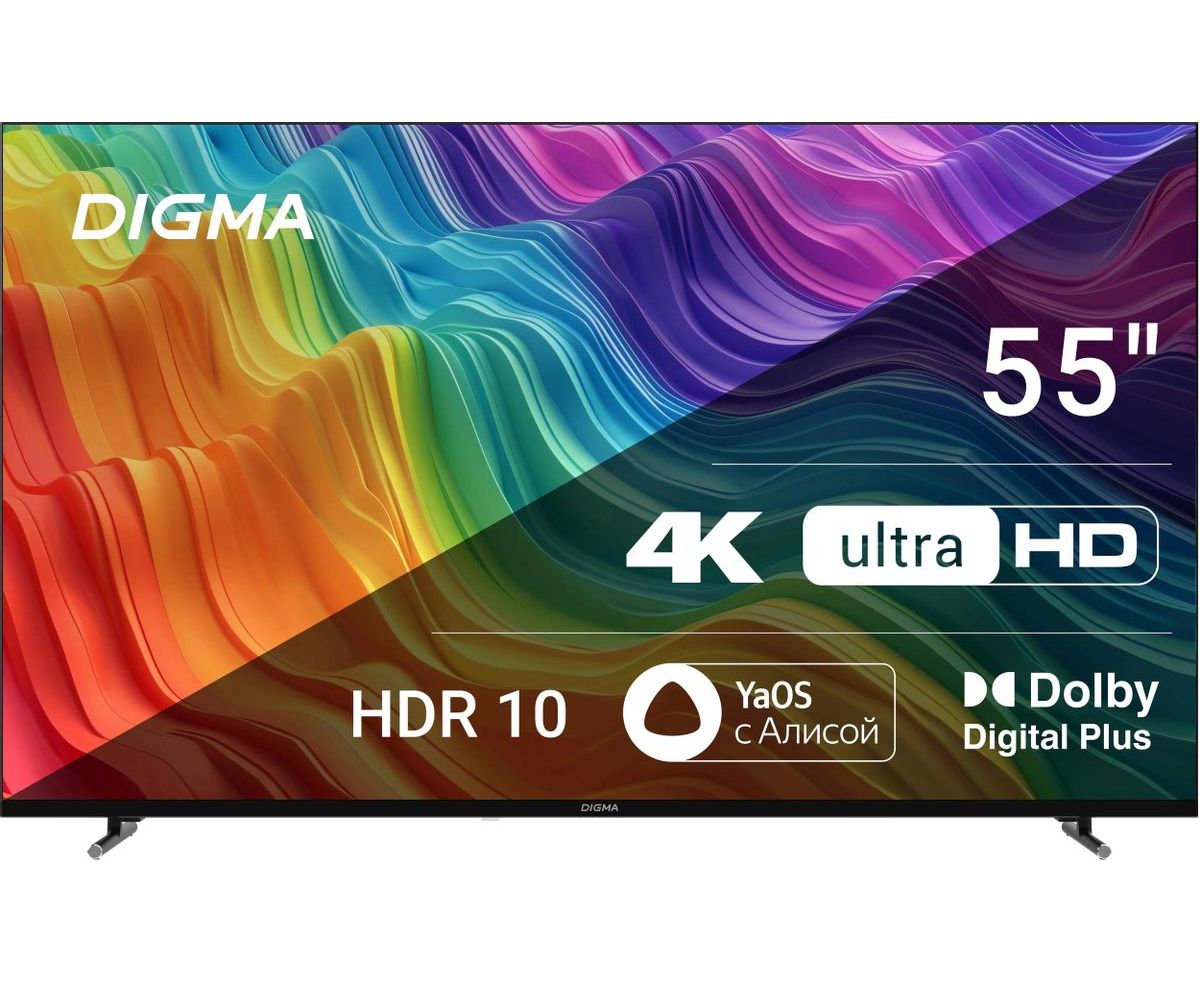 55" Телевизор Digma DM-LED55UBB33 черный 3840x2160, 4K Ultra HD, 60 Гц, Wi-Fi, Smart TV, Яндекс.ТВ