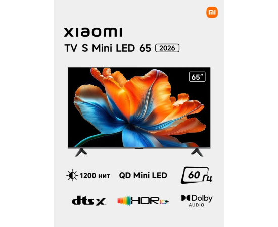 65" Телевизор Xiaomi TV S Mini LED 65 2026 L65MC-SRU черный 3840x2160, 4K Ultra HD, 60 Гц, Wi-Fi, Smart TV, Android TV РСТ¶