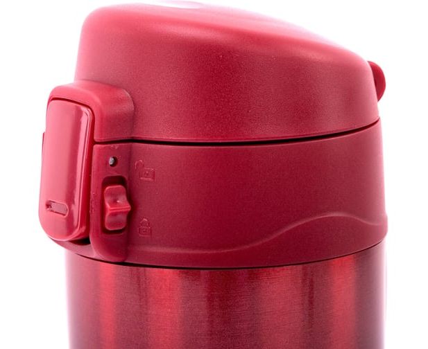 Термокружка обладает оптимальной формой для фиксации в держателе автомобиля, что позволяет использовать ее во время поездок. Термокружка снабжена откидывающейся крышкой с кнопкой, позволяющей с легкостью использовать ее одной рукой. Также, для защиты от непроизвольного нажатия кнопки, кружка имеет специальный защитный замок-предохранитель.