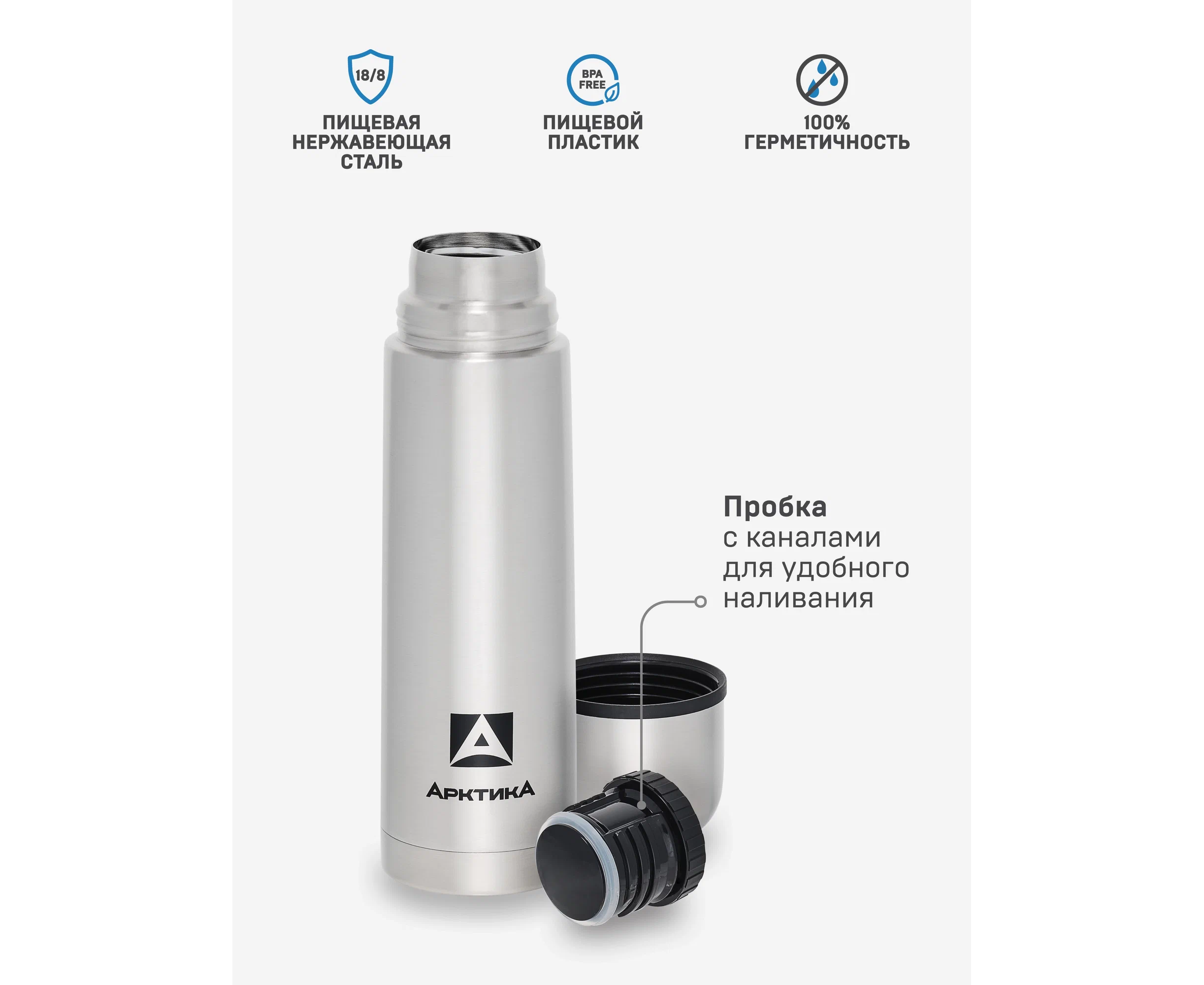 термос -1шт; крышка-чашка -1шт; пробка с каналами - 1шт;