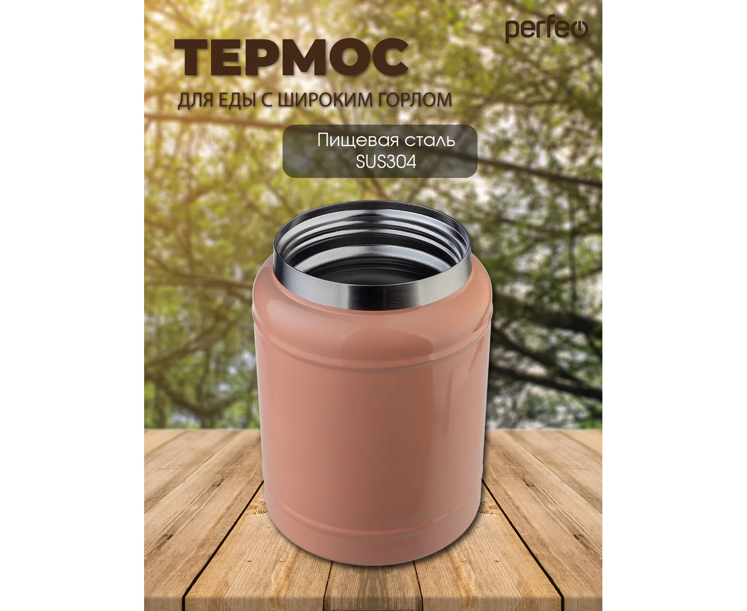 Термос для еды PERFEO с широким горлом, объем 0,4 л., розовый, (Арт. PF_E2318)