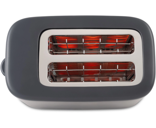Компактный тостер со стандартными слотами для двух тостов, торцевое управление, трендовый серый цвет. Только тостер, все что нужно.