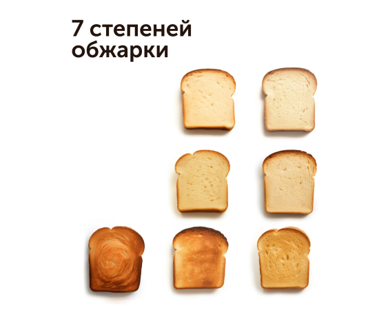 Ваш идеальный завтрак с тостером RT-44. 7 степеней обжарки позволят вам приготовить хлеб именно так, как любите вы – слегка подсушенный или с хрустящей корочкой. Автоматическое центрирование тостов, функция разморозки и выдвижной поддон для крошек отвечают за максимальное удобство использования.