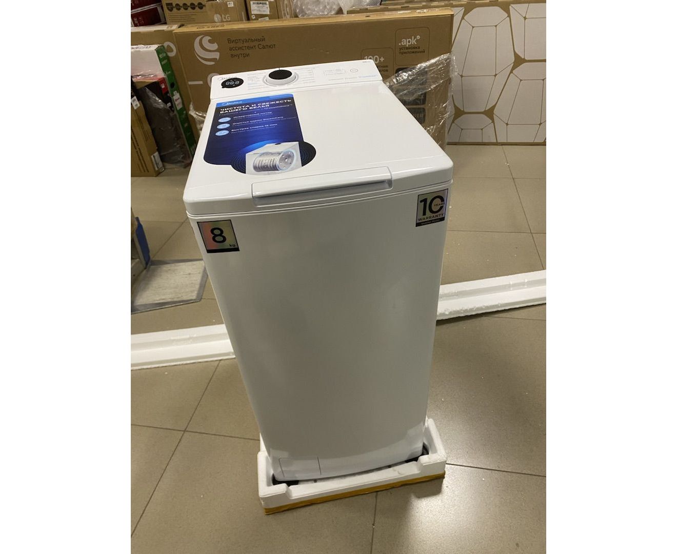 УЦ Стиральная машина вертикальная Midea MF100T80BS/W-RU (плохая упаковка, вид бу, замена датчика закрытия люка)